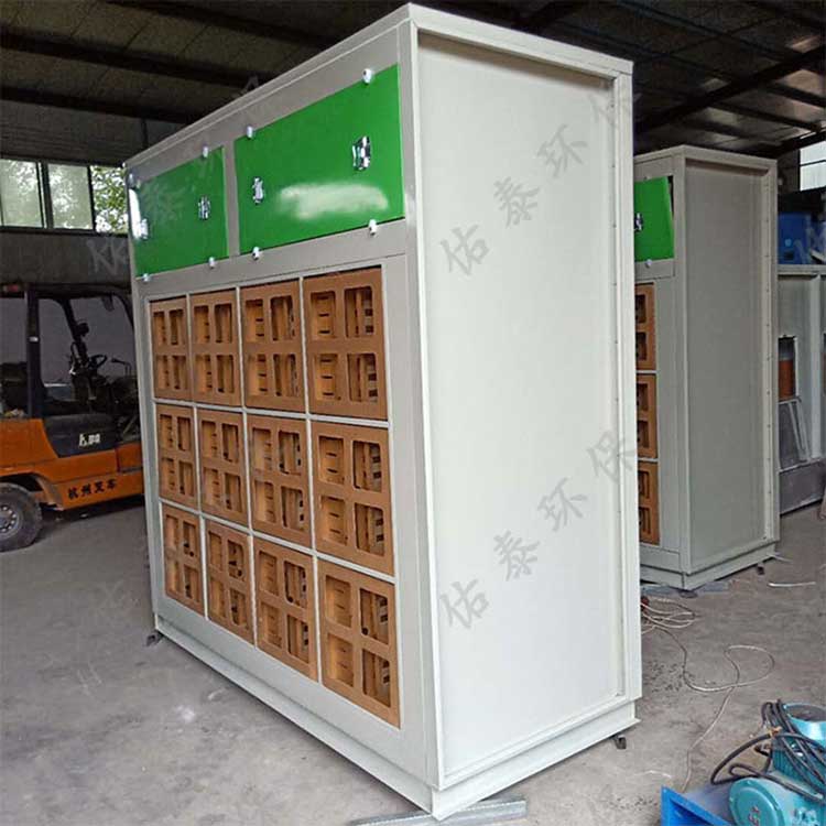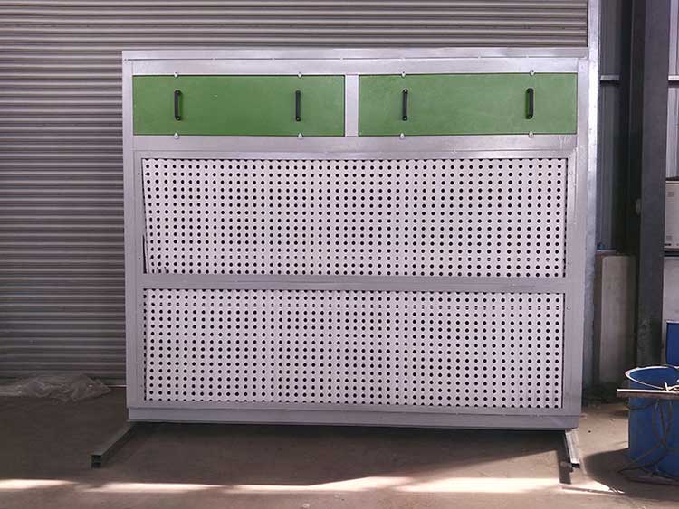 環保干式噴漆柜,用折流式過濾板及纖維過濾棉相結合方式過濾漆霧,是適用于干式噴漆房內的一種新型環保產品,它采用了慣性分離技術,可有效吸收噴漆車間的漆霧,過濾氣流先經過V型過濾紙或迷宮式紙盒,在過濾中氣流多次改變流動方向,這樣那些比空氣重的顆粒會粘附在過濾層上,不會隨氣流而帶走。剩下部分細小顆粒經過纖維過濾棉進行二次過濾,這樣漆霧凈化效果高達98%以上。初步凈化的廢氣然后通過活性炭吸附箱或光氧催化分解后達標高空排放.