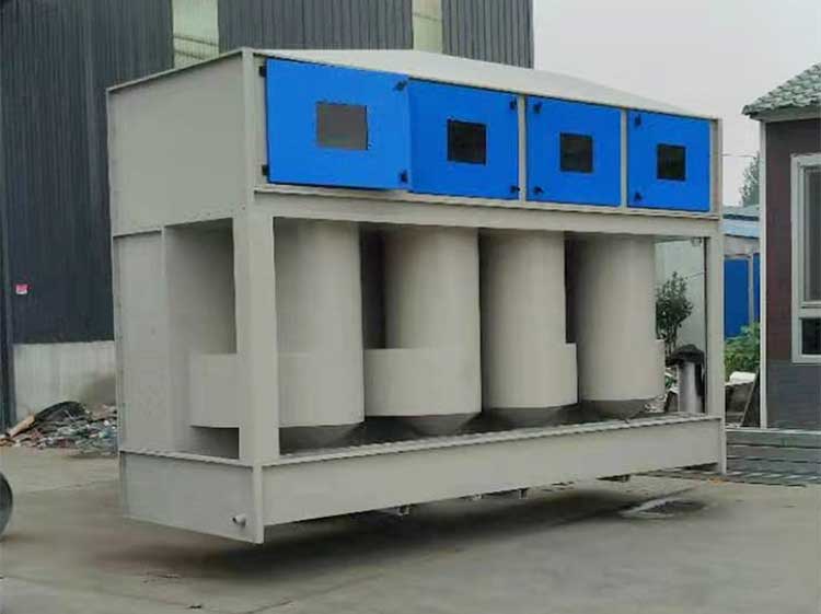 2.設(shè)備結(jié)合水簾、噴淋、氣旋式的優(yōu)點(diǎn),設(shè)備運(yùn)行中使廢氣與水混合充分混合,從而提高廢氣處理效率。打破傳統(tǒng)的水簾式廢氣處理方式。