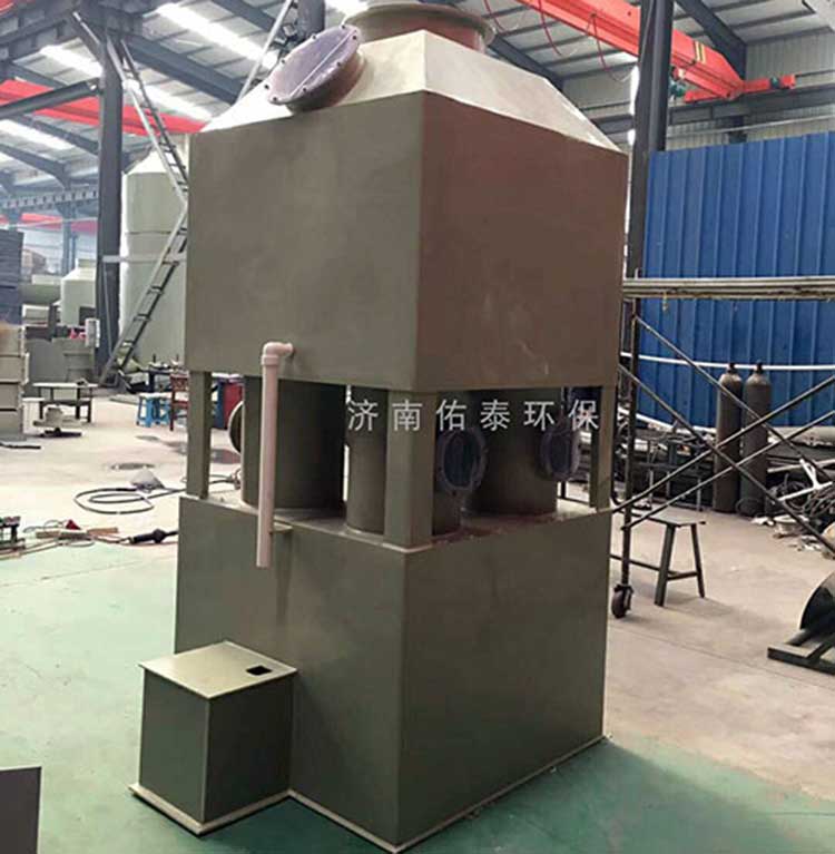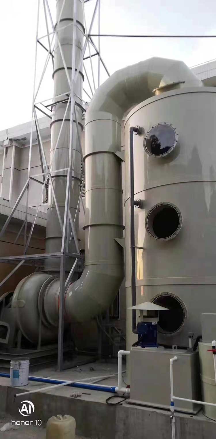 1.5萬風(fēng)量pp噴淋塔塔規(guī)格為:ф1.8m*H4.0m*10mm。進、出風(fēng)口直徑均為600mm。循環(huán)水量每小時22立方。每小時處理廢氣量15000立方左右。凈化塔整體厚度為8mm PP板。塔體內(nèi)部有二層水噴淋裝置,三層浮球填充,帶水箱和2.2KW純銅芯普通循環(huán)水泵。