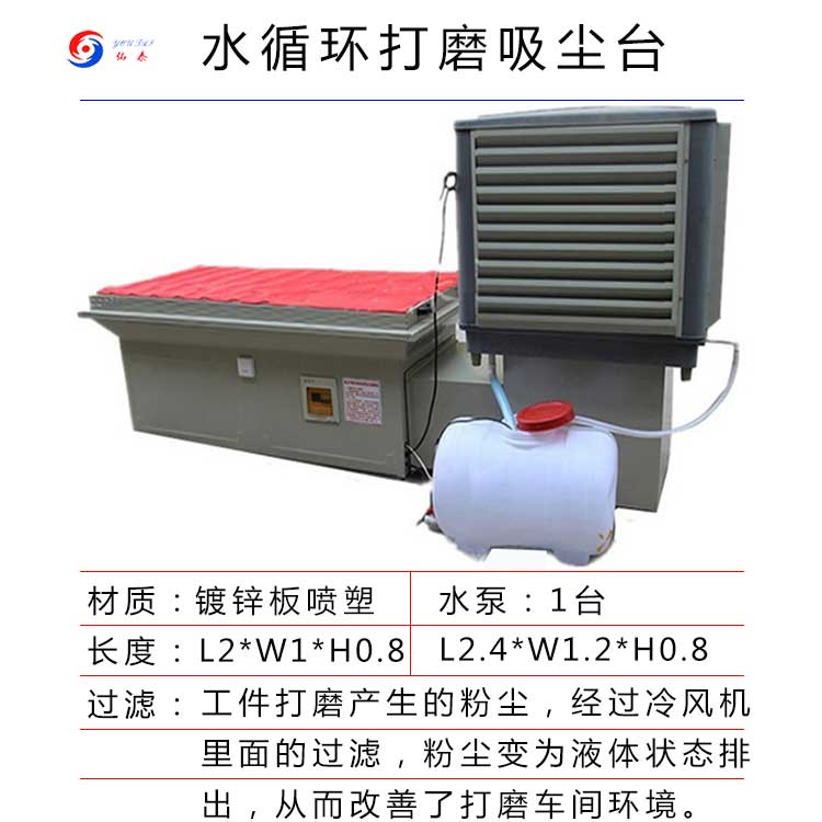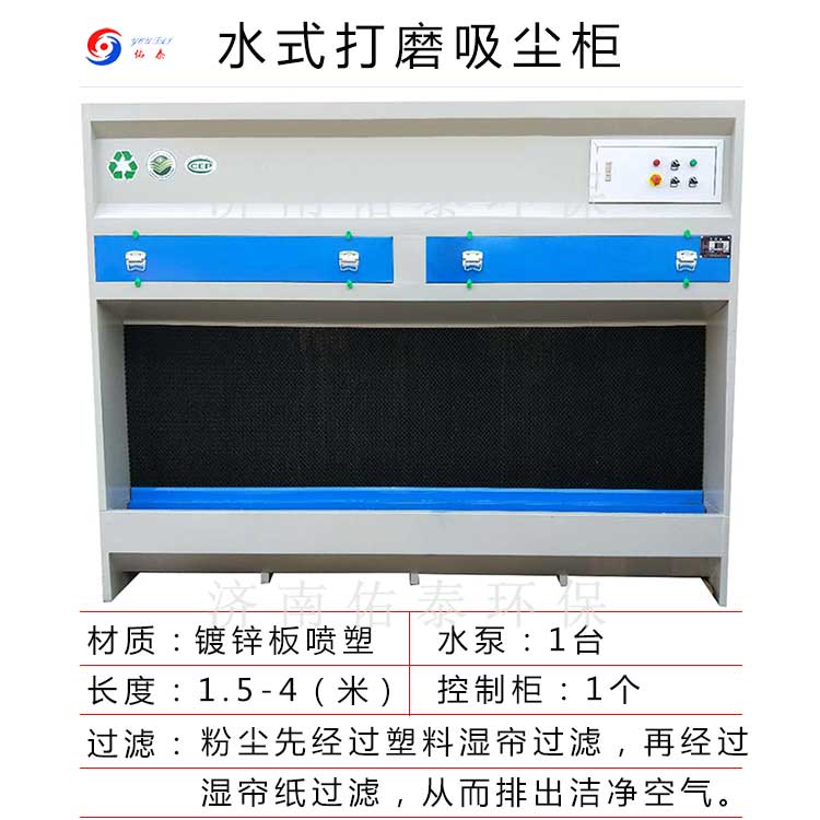 把工件放在水式打磨柜的工作臺面上,產(chǎn)生的粉塵、大量的高濃度含苯有害物質(zhì),被吸入設(shè)備內(nèi),經(jīng)過多層水洗過濾裝置,使粉塵變?yōu)橐后w狀態(tài)排出,工作區(qū)不再有粉塵的飄揚(yáng),從而改善了打磨車間的工作環(huán)境,保證打磨員的身體健康。也能提高生產(chǎn)效率和降低生產(chǎn)成本,具有投資小、運(yùn)行成本低、安裝方便靈活的特點(diǎn)。